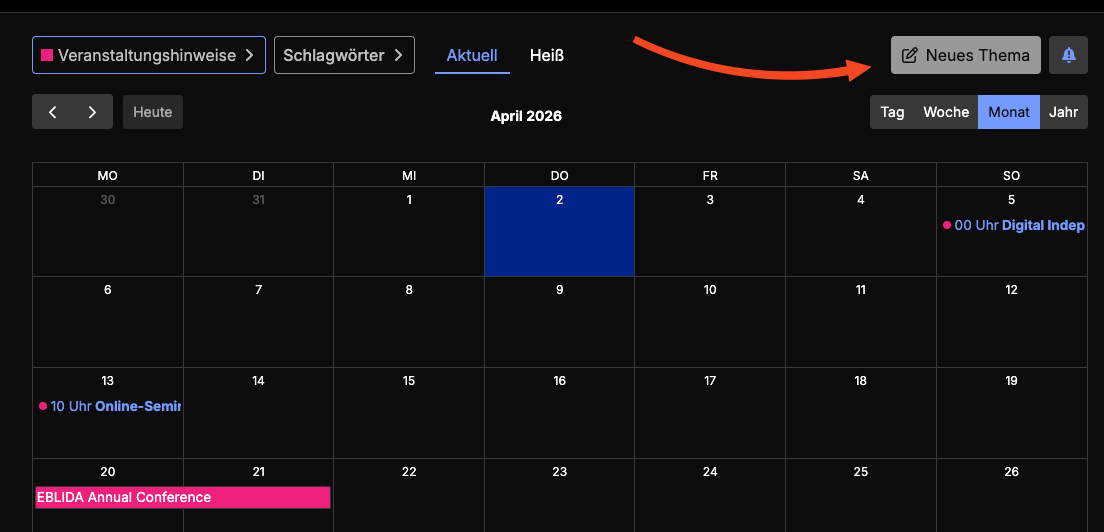Erstellen eines Themas mit Kalendereintrag