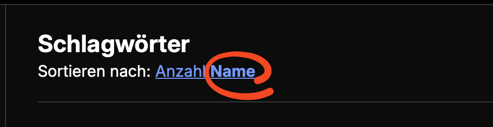 gibt es die Möglichkeit, die Schlagwörter in der Ansicht „Alle Schlagwörter“ nicht zunächst nach Häufigkeit zu gruppieren, sondern direkt alphabetisch zu sortieren? Meinetwegen die 5 am häufigsten vergebenen Schlagwörter vorneweg oder so.